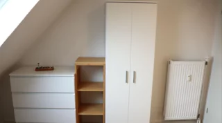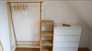 - Separates Ankleidezimmer mit jeweils zwei Kleiderständern, Kommoden und Regalen sowie einem Schrank mit Reinigungsutensilien